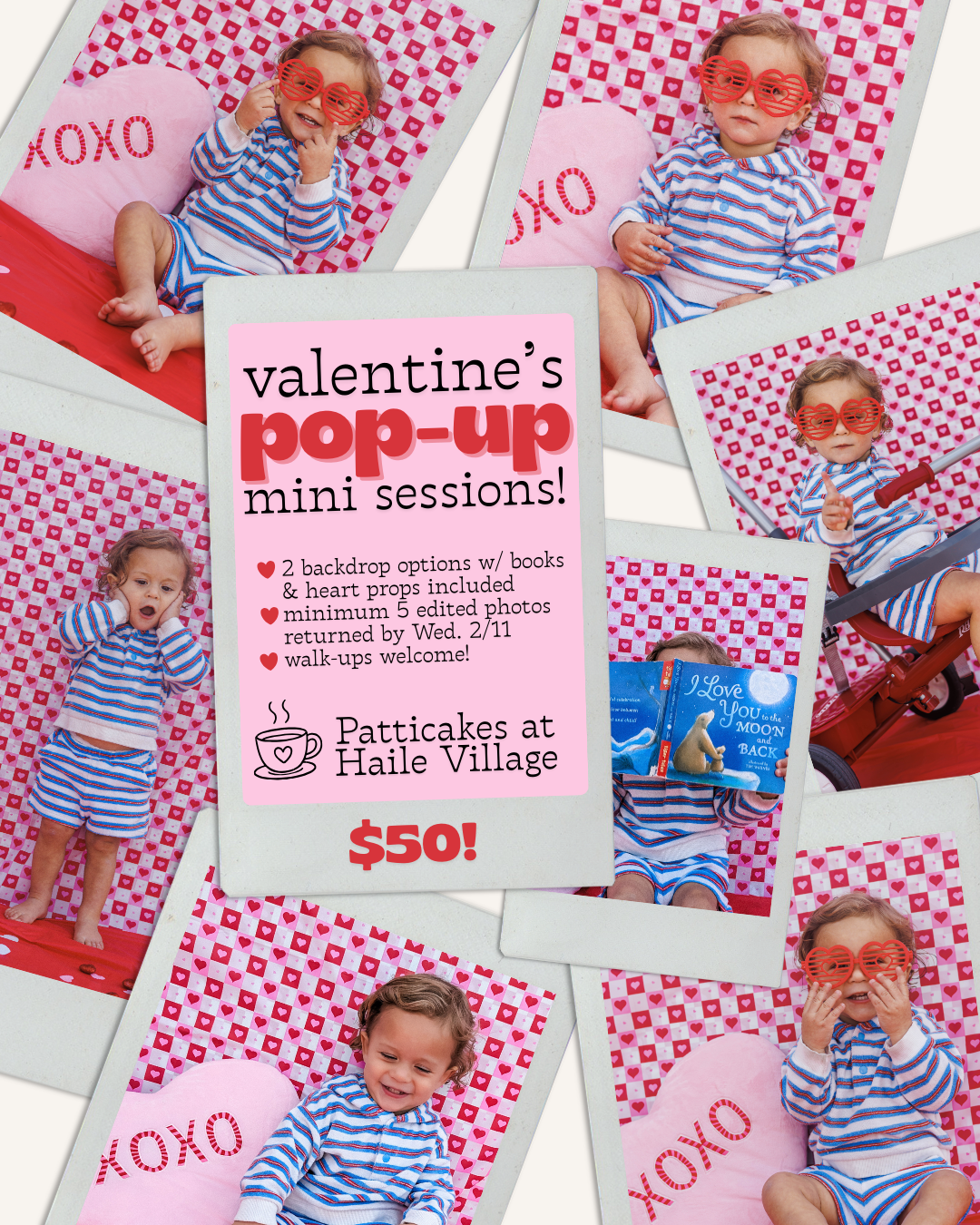 Sign up here to lock-in a spot for Valentine pictures at my Pop-up Mini Session event! Once I receive your form, you’ll get back a confirmation to choose a time slot. | Saturday, February 7 9am-11am |